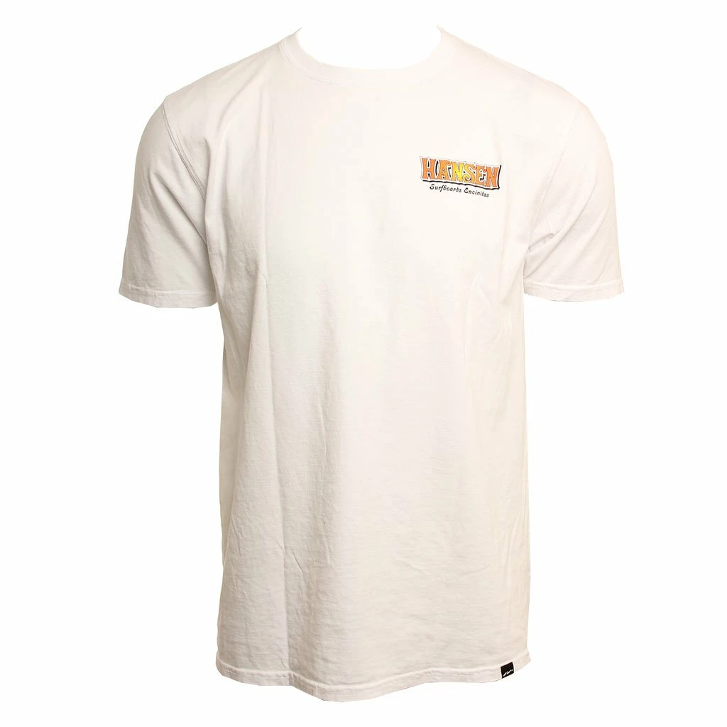 One our famous vintage logos featured on many of our most popular boards now on a Tee! White: 100% Cotton Indigo: 52% Cotton 48% Polyester / Mens Shirt 50/50 in White / Small / 100% Cotton/ Polyester / Hansen