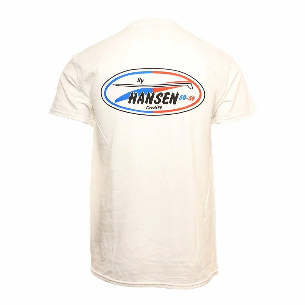 The Original 50-50 By Hansen Cardiff Logo Tee! The History of the Hansen Surfboards Brand is what has made the shop what it is today. We will be revisiting our history and producing new merchandise based on our old Logos, Ads and Catalogs! 100% Cotton / Mens Shirt 50-50 Cardiff Original in White / Small / 100% Cotton / Hansen