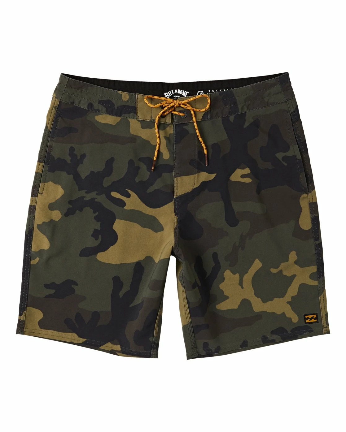 Soak up the surf and the sun in the All Day Lo Tide Boardshort, designed with a layback, modern fit featuring side pockets and elastic lasso waist. Garment overdye on these recycled surf suede boardshorts gives this style a buttery hand feel and high/low color dimension. Extra utility comes with the side and back patch pockets. And water repellent coating on the fabric give them that light weight quick dry feel. Features: : Men’s Layback boardshorts. Fabric/tech: Recycler Surf Suede. The original durable boardshort fabric for all your surf needs. Made from recycled Pet plastic bottles. Micro Repel water repellent coating for a light weight and quick drying fabric. Outseam: 17″, short length. Fit: Lo Tide, a modern fit featuring side pockets and an elastic lasso waist. Equally perfect for a lounge on the beach or a quick shred. Waist: Elastic. Pockets: Side. Pockets: Back patch. Garment overdye gives this style a buttery hand feel and high/low color dimension with elastic waist comfort. / Mens Boardshorts All Day Lo Tide 17″ in Camo ( Cmm) / 28 / Billabong