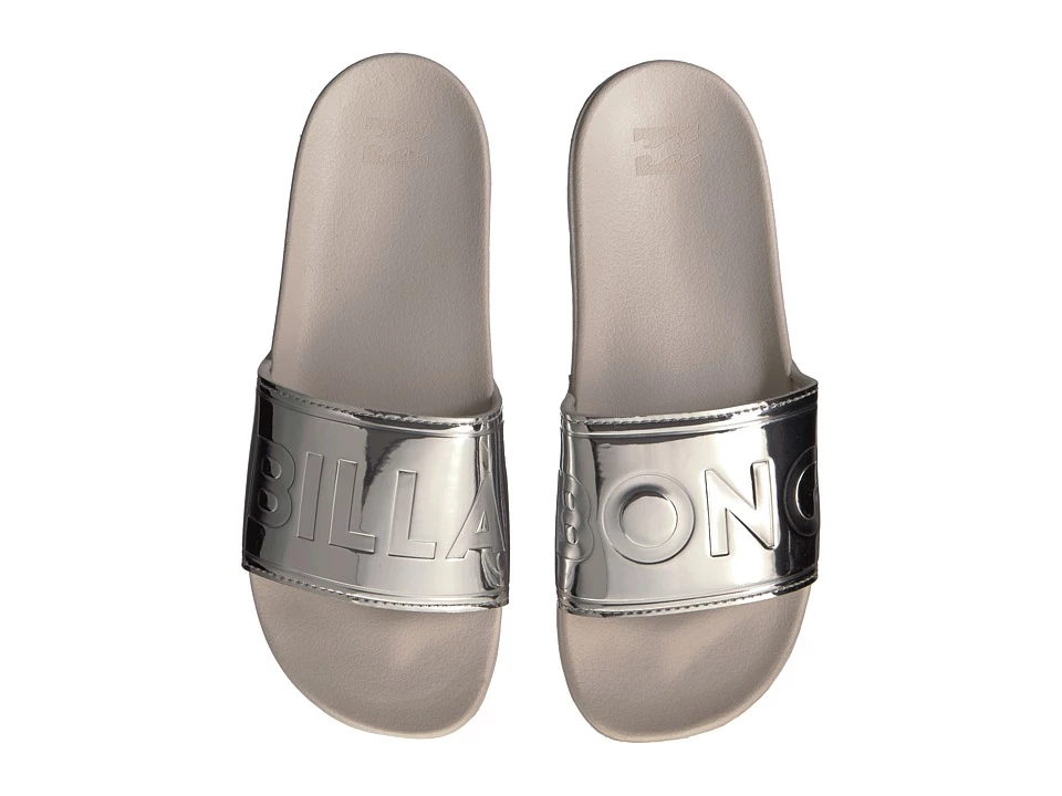 Reflect your sunny side from the ground up with the Billabong Rise n’ Shine sandal! Stylish synthetic slide silhouette. Synthetic metallic uppers with debossed logo detailing across the strap. Molded footbed with arch support for all-day comfort. Rubber outsole for long-lasting wear. Imported. Measurements: Weight: 5 oz Product measurements were taken using size 8 width M. Please note that measurements may vary by size. Weight of footwear is based on a single item not a pair.