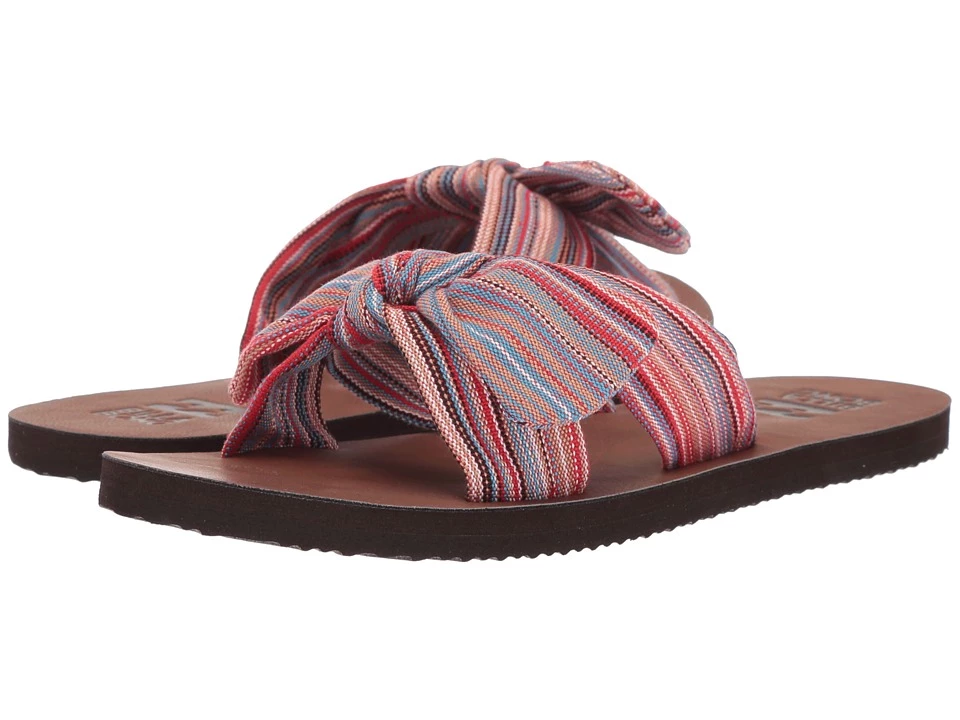 A little knotty a little nice! Add sweet style to your summer with the Billabong Tied Up sandal. Slide sandals in a durable vegan leather. Faux-suede straps with bow-tie detailing. Printed logo adorns footbed. Rubber outsole offers durable wear. Imported. Measurements: Weight: 4 oz Product measurements were taken using size 8 width M. Please note that measurements may vary by size. Weight of footwear is based on a single item not a pair.