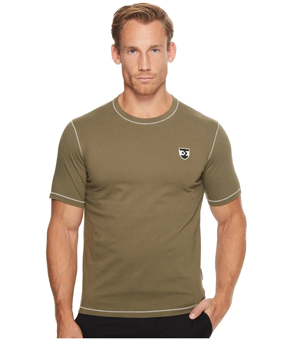 Converse delivers a clean casual look with the Cons Crest T-Shirt. Signature Chuck Taylor patch print at chest. Cotton jersey T-shirt. Ribbed crew neck. Short sleeves. Straight hem. 100% cotton. Machine wash and tumble dry. Imported. Measurements: Length: 28 in Product measurements were taken using size MD. Please note that measurements may vary by size.