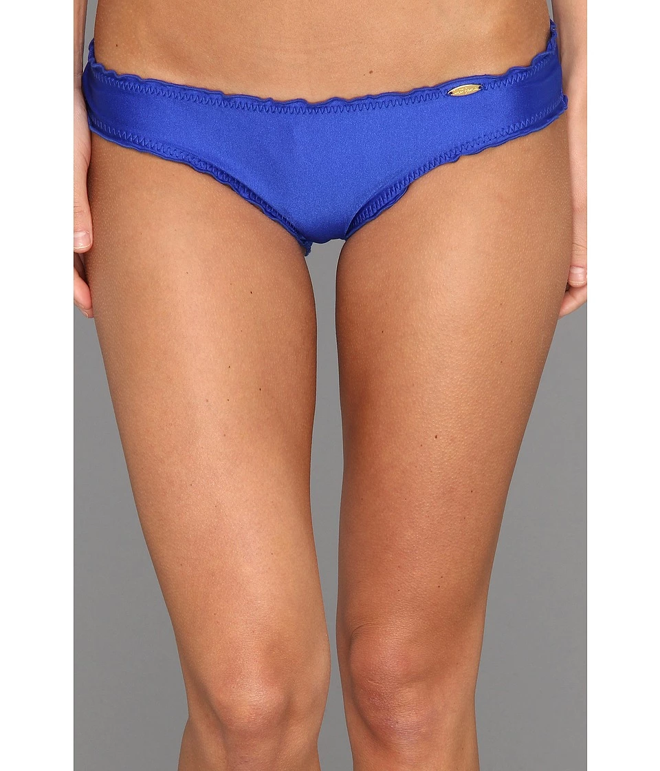 A tasty swimwear treat. Bikini bottom in shimmery solid hues. Wavy edges. Low rise. Gold-tone logo plate at the front waist. Full back shows a flirty amount of cheek. Ruched seam runs down the center back to accentuate the positive. 80% nylon, 20% spandex. Hand wash cold, line dry. Imported. If you’re not fully satisfied with your purchase, you are welcome to return any unworn and unwashed items with tags intact and original packaging included.
