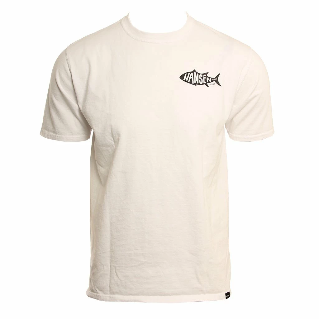 The Hansen Mens Fishy Shirt is a 100% Cotton tee with front and back screen prints / Mens Shirt Fishy in White / Large / 100% Cotton / Hansen
