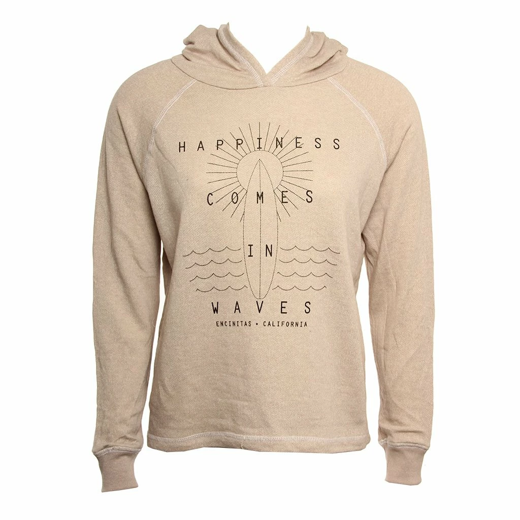 The Hansen Womens Happiness Comes In Waves Hoodie is a lightweight fleece sweatshirt with front logo. 65% Cotton 35% Polyester / Womens Sweatshirt Happiness Comes In Waves Hoodie in Grey / Large / Cotton/ Polyester / Hansen