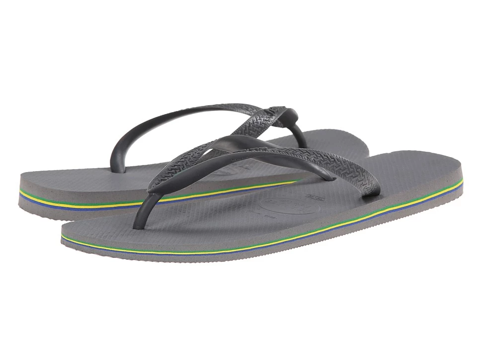 Feel the surf between your toes and the sun on your face. The Brazil Flip Flips from Havaianas will be sure to take you to that happy place! Rubber upper. Thong construction. Embossed Havaianas logo and Brazilian flag. Cushioned footbed. Rubber outsole. Made in Brazil. Measurements: Weight: 8 oz Product measurements were taken using size 45/46 (US Men’s 12/13), width M. Please note that measurements may vary by size.