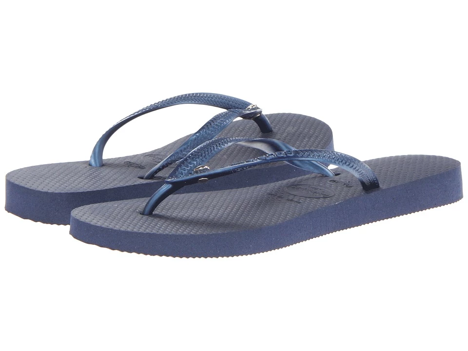 The Slim Crystal Glamour SW features a sparkling Swarovski Elements pin embellishment on a slim metallic strap for eye-catching appeal. A tonal Havaianas logo and signature textured footbed provide style and comfort. Thong-style construction. Rubber upper. Man-made lining. Lightly cushioned man-made footbed. Man-made sole. Imported. Measurements: Weight: 6 oz Product measurements were taken using size 39/40 Brazil (US Men’s 7/8 Women’s 9/10) width M. Please note that measurements may vary by size. Weight of footwear is based on a single item not a pair.