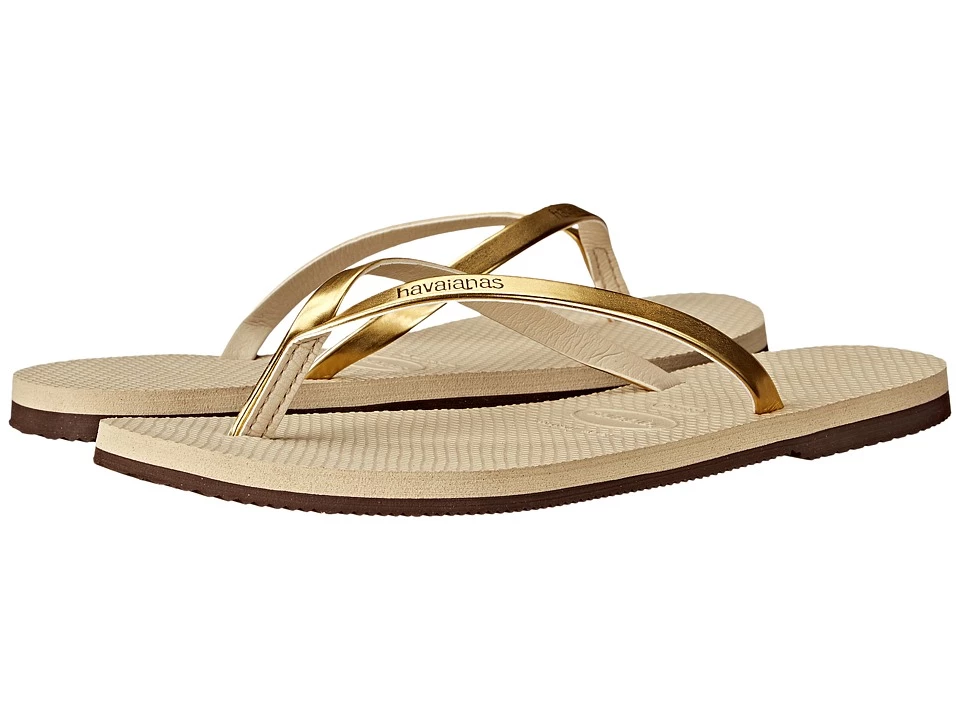 Make these Havaianas your go-to sandal for warm weather fun or leisure lounging. Synthetic upper features a metallic finish and embossed logo. Thong-style construction. Synthetic lining. Cushioned footbed. Synthetic sole. Made in Brazil. Measurements: ; Weight: 6 oz ; Product measurements were taken using size 39/40 Brazil (US Men’s 7/8, Women’s 9/10), width M. Please note that measurements may vary by size.