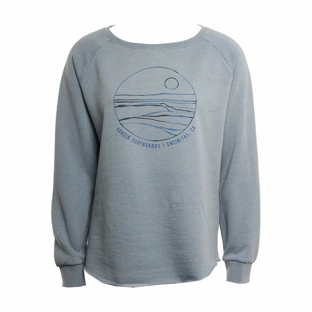 The Hansen Womens In The Lineup Crewneck is a 52% Cotton 48% Polyester Sweatshirt with front screenprint. / Womens Sweatshirt In The Lineup Crewneck in Mist / Large / Cotton/ Polyester / Hansen