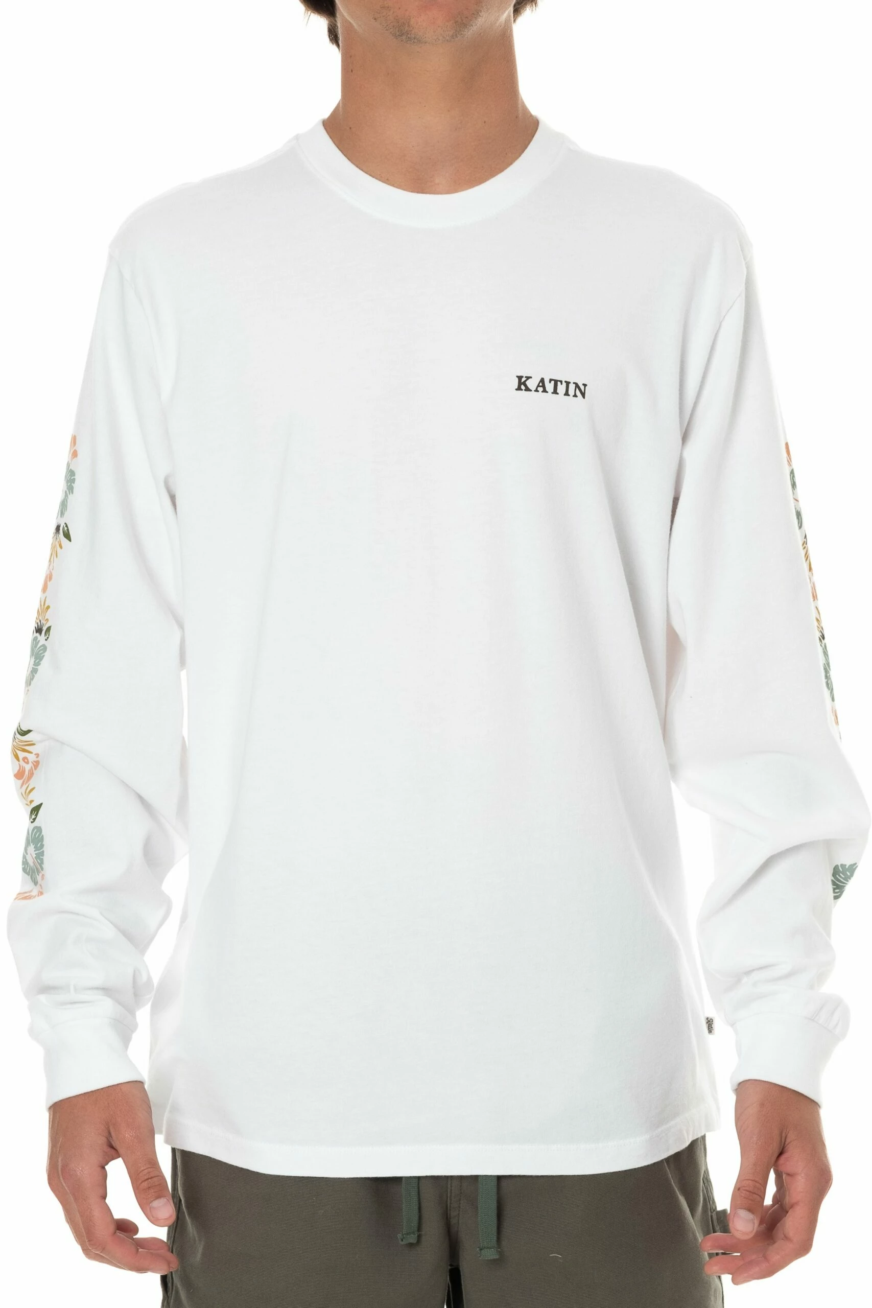 The Lei’d long sleeve, constructed of ultra-soft, 100% Organic Cotton that has been custom dyed for effortless style and extended comfortability. 100% Certified Organic Cotton Custom dyed & washed Katin flag label / Mens Shirt Lei’d Long Sleeve in White / Small / Cotton / Katin