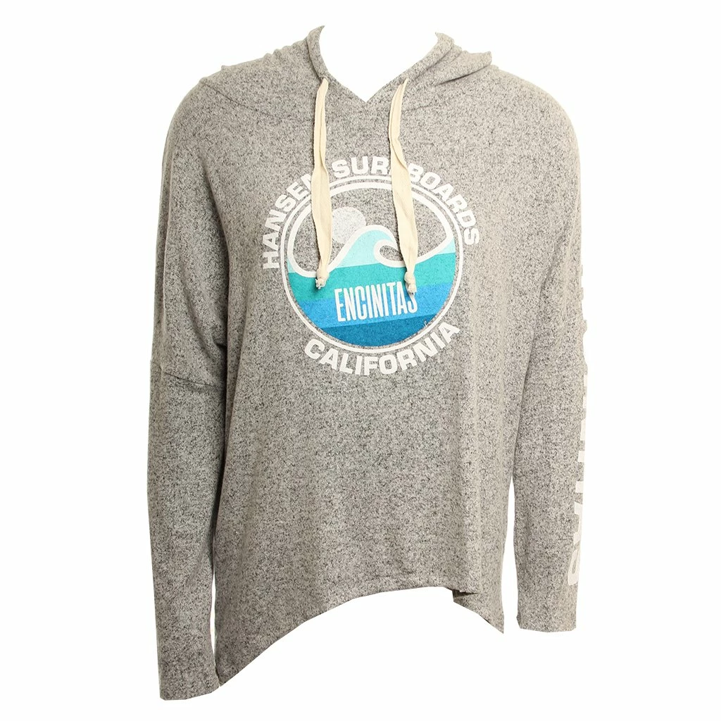 H I- L O Sweatshirt Screen printed chest graphic Encinitas screen print on left arm76% rayon / 21% polyester / 3% spandex / Womens Sweatshirt Lootin Fuzzy in Salt N Pepper / Small / Polyester/ Spandex / Hansen