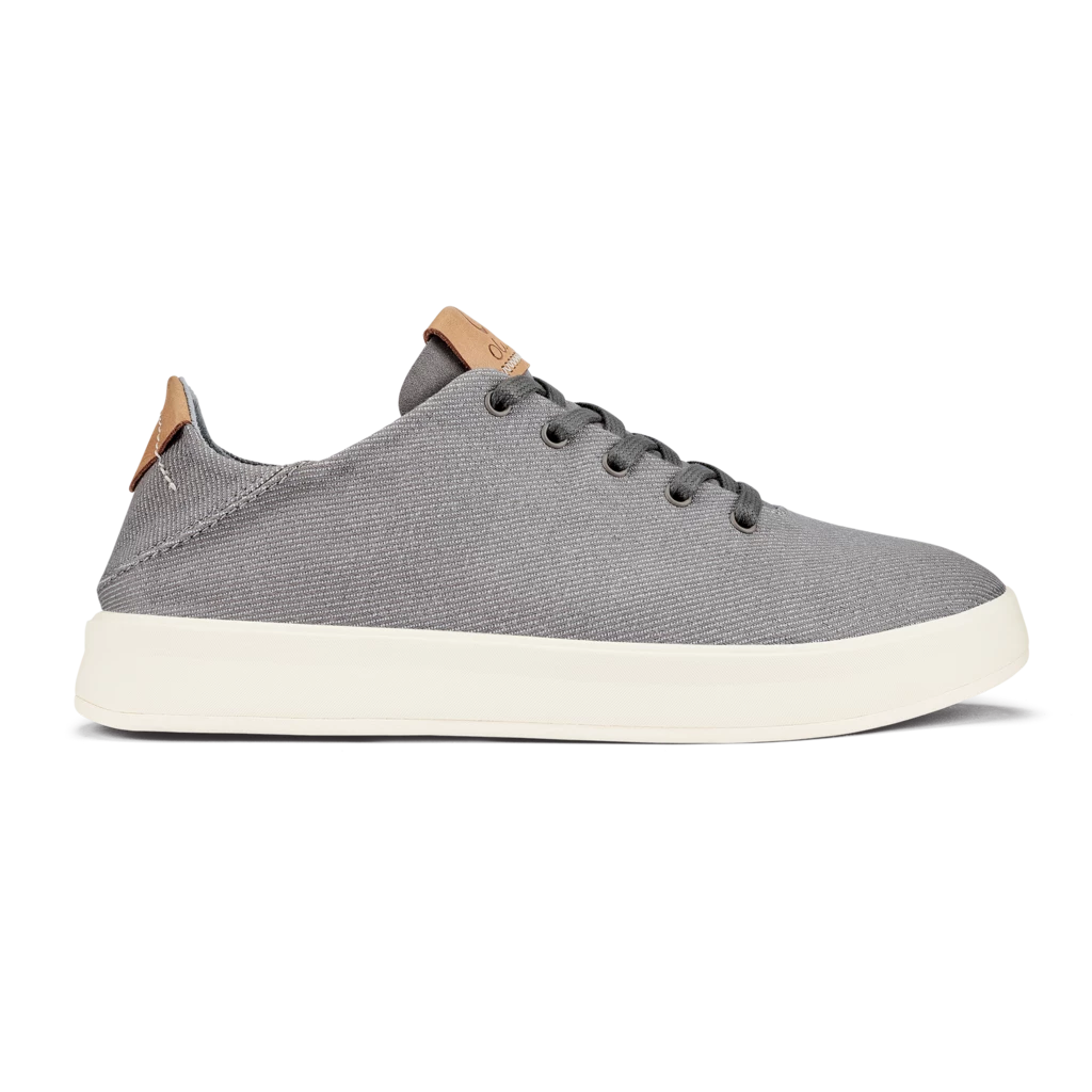 Women’s Canvas Sneakers Ki’ihele Lī(key-ee-hey-leh lee) Translation: Wanderer, lace The new Ki’ihele Lī is inspired by the modern traveler. Featuring lightweight canvas material, signature Drop- In Heel®, and a modern midsole design, it’s designed to keep you comfortable no matter where you wander. The patented Drop- In Heel® design offers both shoe and slide functionality. Embossed and printed logos add custom style. Lining made with recycled content. A blend of woven canvas and suede microfiber with premium leather accents and a breathable microfiber lining creates an ultra-comfy and customized fit. Dual-density Pu footbed, cushy gel insert, and soft, microfiber footbed cover deliver all-day support. Graphics inspired by the views of palm trees through breeze block architectu High-rebound, anatomical, compression-molded Eva with our non-marking ‘ Wet Grip Rubber’ pods inspired by island flora. / Womens Shoes Ki’ihele Lī in Fog / 7 / Olukai
