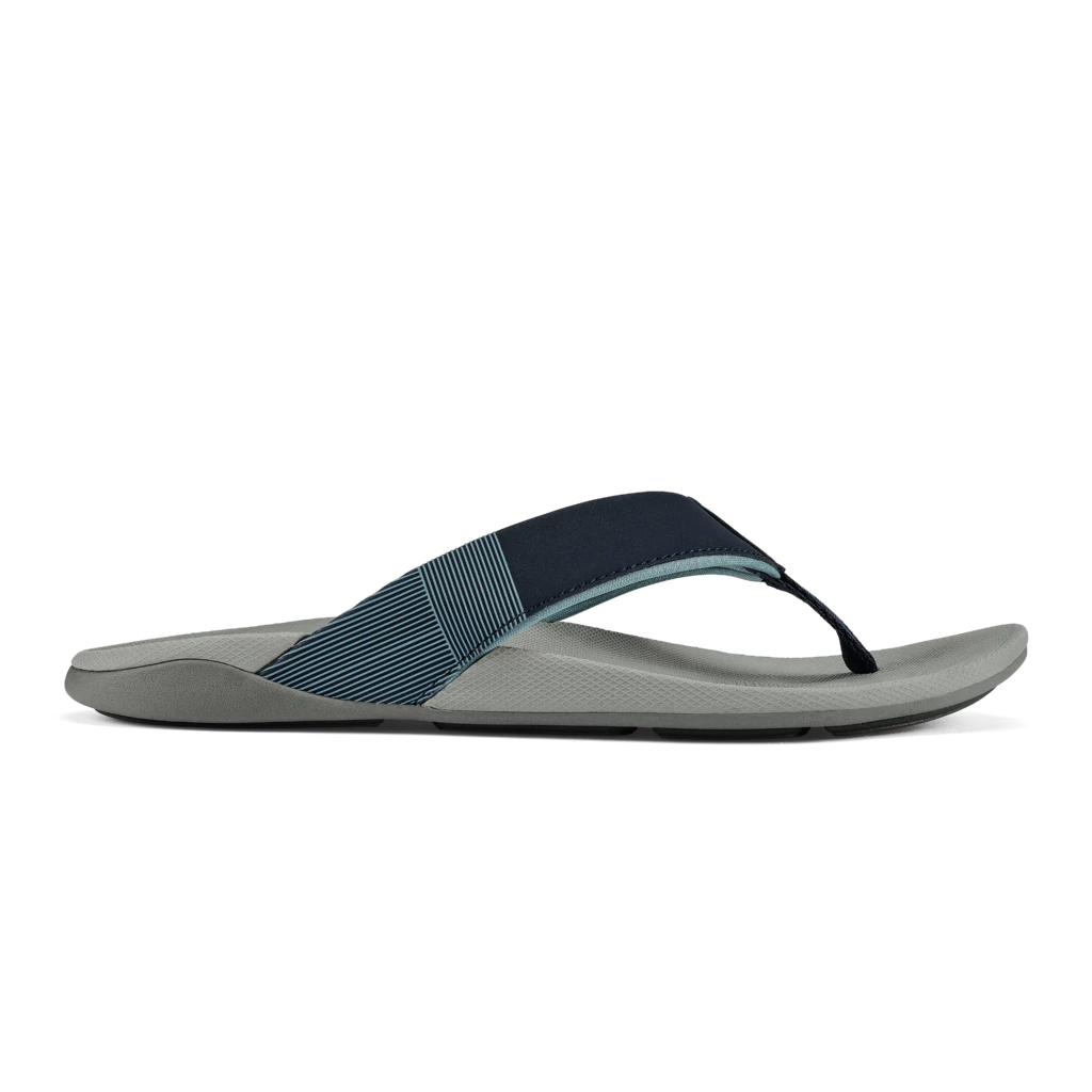 Inspired by the famed sea breeze of Kailua- Malanai is the perfect by-the-water sandal. Water-resistant and ready for any beach adventure, this style features a non-marking outsole, custom design, and a contoured footbed for lasting comfort. Water-resistant, smooth Pu with a 3 D-printed overlay, soft, breathable jersey knit lining, and nylon toe post create an ultra-comfy and customized fit. Soft, compression-molded Eva midsole provides anatomical fit delivers sustained comfort. Non-marking rubber outsole with breeze block lug design for added traction. / Mens Sandals Malanai in Blue / 10 / Nylon / Olukai