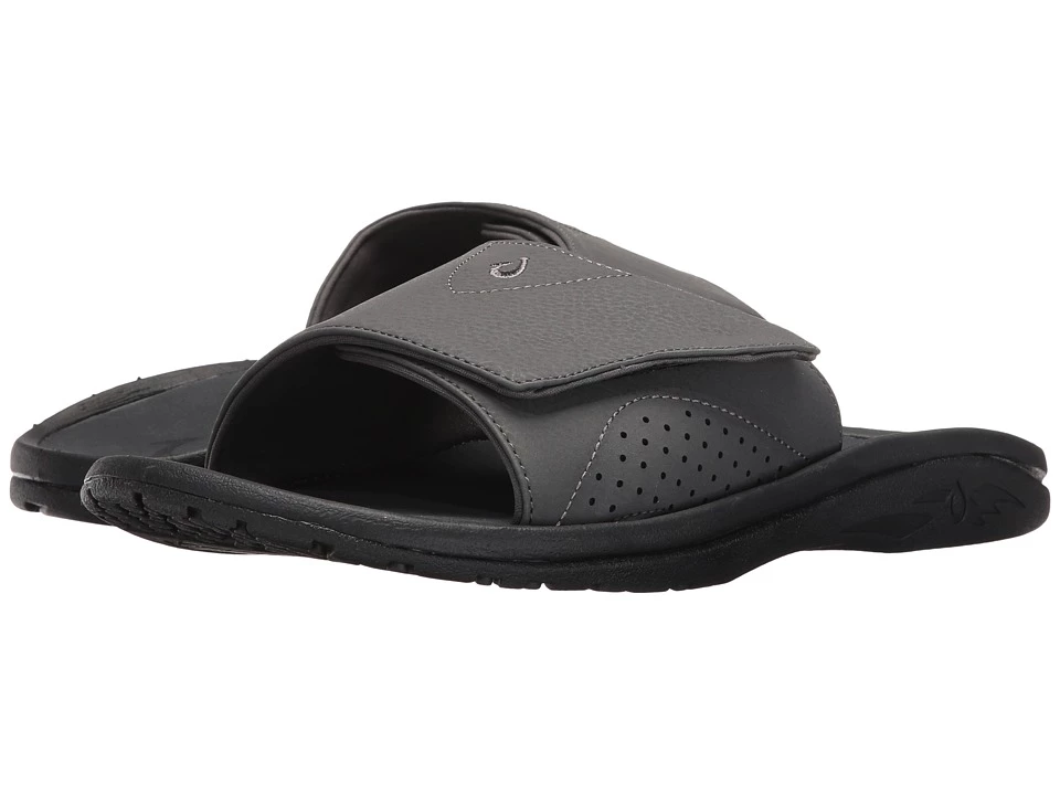 Live life on easy street with the laid-back vibes of the OluKai Nalu Slide! ; The Nalu Slide takes all the comfort of the classic ‘Ohana, and offers it in a slide version for your go-to, all-day slide. Water-resistant synthetic strap with ultra soft, quick-drying jersey knit lining. Decorative stitching detail on upper. Adjustable wide single strap features easy-grab corner for quick adjustment. Fully adjustable to accommodate a range of foot widths. High-quality micro hook-and-loop closure. Embroidered hook logo detail. Side perforations for breathability. Anatomical compression-molded EVA midsole with an ICEVA drop-in footbed. Non-marking rubber outsole, lugged and siped for enhanced traction. Imported. Measurements: ; Weight: 10 oz ; Product measurements were taken using size 11, width D – Medium. Please note that measurements may vary by size.