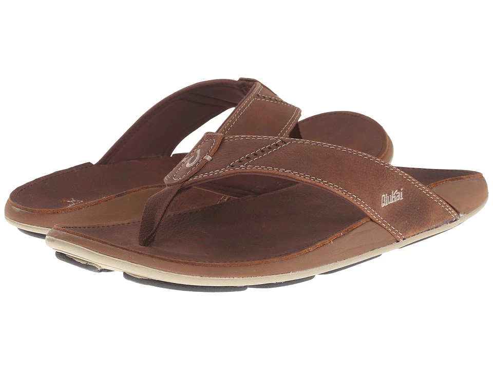 Exceptional cushioning and island craftsmanship make the OluKai Nui a one-of-a-kind sandal experience! ; Premium full grain leather with laser-cut perforations and stitching details. Soft textile lining for all-day comfort. Compression-molded EVA footbed topped with premium full-grain leather. Anatomically correct contour for a personalized fit and sustained comfort over time. Non-marking rubber and gum rubber outsole with island-inspired pod design. Decorative stitching on footbed, hand-sewn whipstitching, soft nylon toe post, and embroidered logo. Imported. Measurements: ; Weight: 9 oz ; Product measurements were taken using size 12, width D – Medium. Please note that measurements may vary by size.
