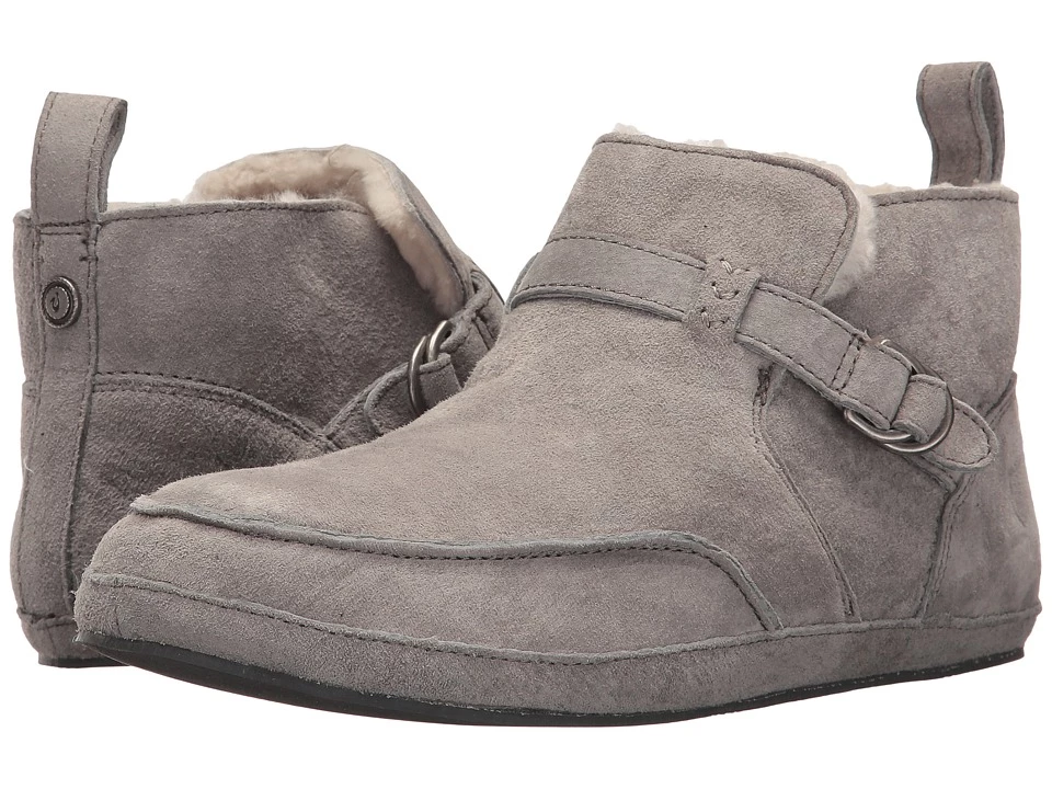 Slip into the plush OluKai Ola Hou shoe for warmth and comfort on those days when there’s a chill is in the air! Uppers of nubuck leather. Hand-sewn whipstitching detail and a custom molded metal logo complete the style. Genuine sheepskin shearling lining for added warmth. Molded metal buckle. Removable and washable dual-density anatomical PU footbed with a polyurethane gel insert and a soft wool blend textile footbed cover. Non-marking rubber outsole with a buffed finish for a modern surface texture and feel. Real sheep fur has been artificially dyed and treated. Fur origin: China. Imported. Measurements: Weight: 10 oz Product measurements were taken using size 8 width B – Medium. Please note that measurements may vary by size. Weight of footwear is based on a single item not a pair.