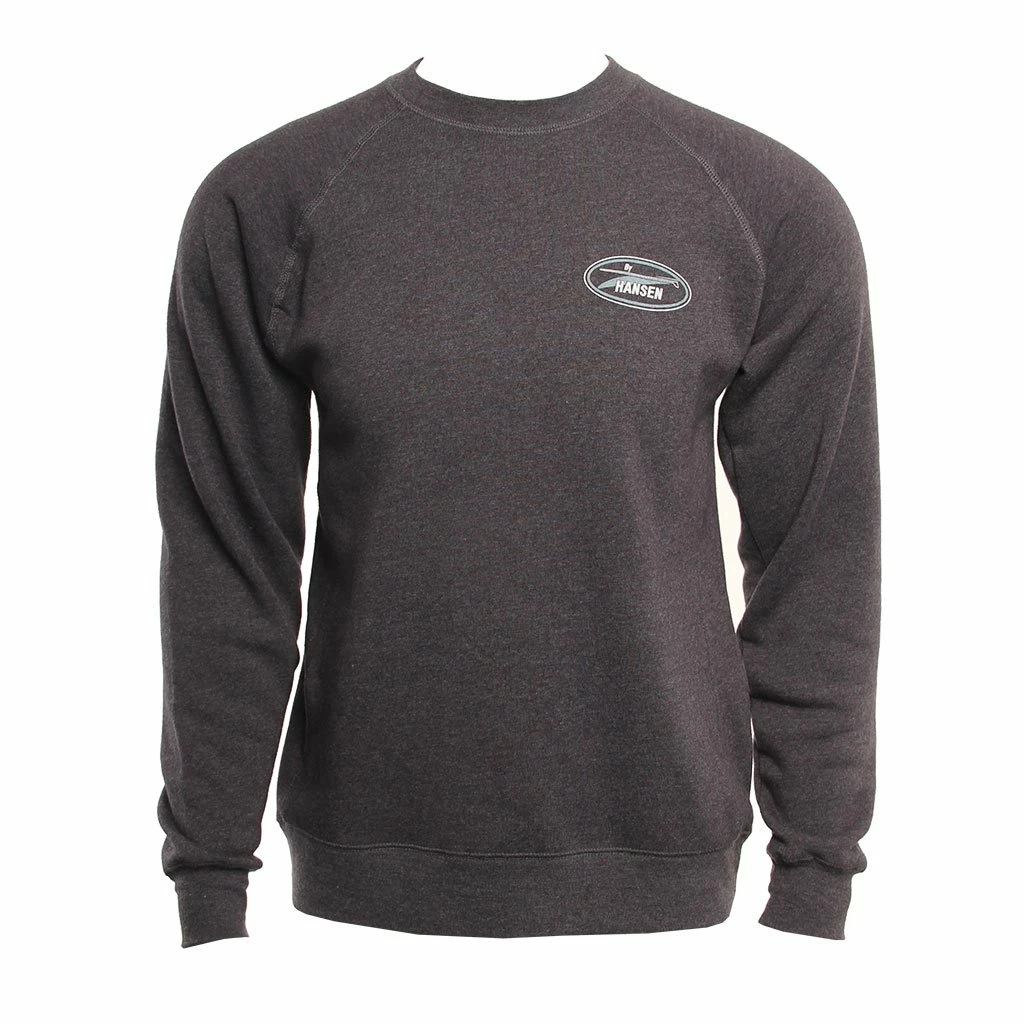 The Original logo crew neck sweatshirt is a regular fit pullover sweatshirt with a screen print design of our original logo on the front and back. Pacific and Olive colorways are made of 100% cotton. Navy Heather is made of a cotton/poly blend. / Mens Sweatshirt Original Logo Crew in Heather Navy Blue / Small / 100% Cotton / Hansen