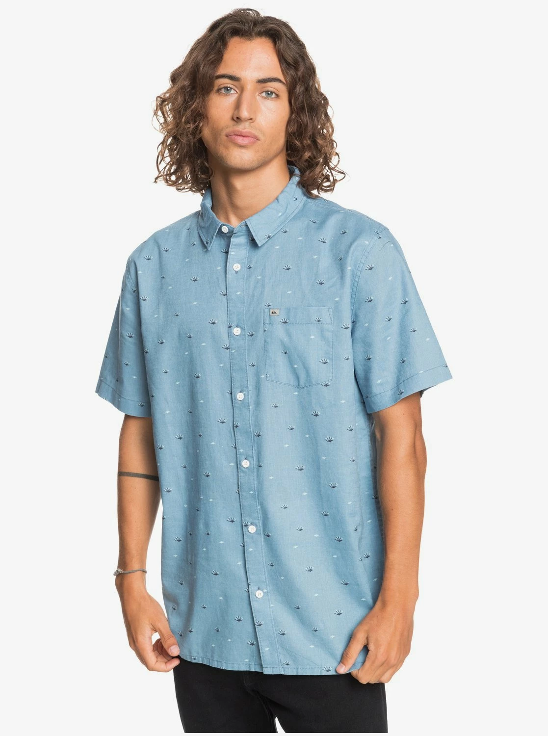 Desert Bush Short Sleeve Shirt for Men Style : E Q Y W T04078 Features: Fabric: Hemp cotton blend fabric Fit: Classic, comfortable regular fit Chest pocket Wash: Garment wash Recycled horn buttons Composition55% Hemp, 45% Cotton / Mens Woven Desert Bush in Blue / Medium / Cotton / Quiksilver