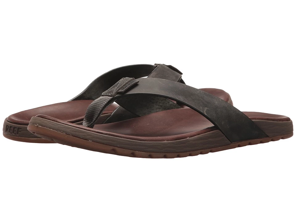 The versatile style of the Reef Contoured Voyage LE sandal is the perfect fit for beach adventure! Outboard lasted strap for secure fit and superior arch support. ISA lite waterproof full-grain leather upper and footbed. Seamless pig skin liner. No break-in period for instant comfort. Soft compression molded EVA footbed under premium waterproof leather. Outsole grade molded midsole creates less waste. Inset high-density sawtooth Swellular rubber outsole for durable wear. Imported. Measurements: Weight: 8 oz Product measurements were taken using size 9 width D – Medium. Please note that measurements may vary by size. Weight of footwear is based on a single item not a pair.