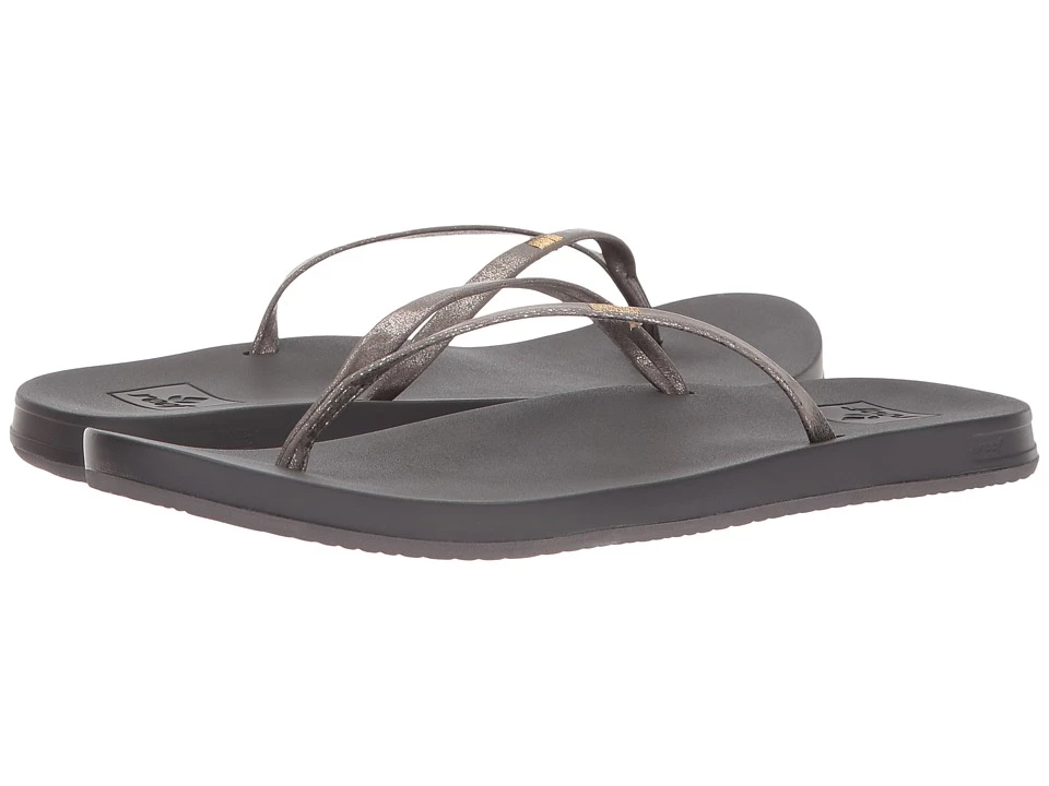Consistent comfort with cushion bounce and support where it counts make the Reef Bounce Slim an instant favorite! Refined slim strap utilizes vegan leather and gold embroidery detail stitching. Reef signature cushion bounce foam. High-energy rebound for more cushioning in every step. Slim modern contouring featuring anatomical arch support and heel cupping. High-density rubber sponge outsole. Imported. Measurements: Weight: 4 oz Product measurements were taken using size 8 width B – Medium. Please note that measurements may vary by size. Weight of footwear is based on a single item not a pair.