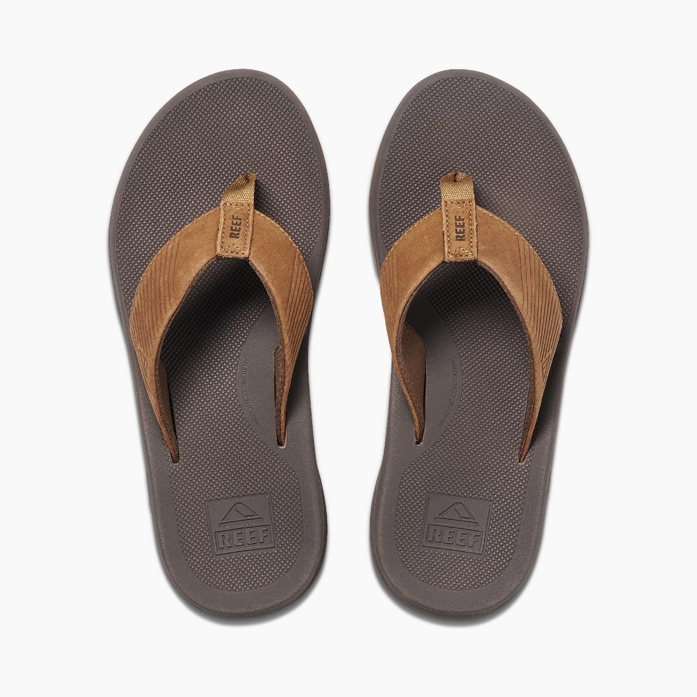 Full-grain leather straps on the Phantom Ii sandals bring together classic style with all-day comfort. Reef build each of these flip flops to be strong like the tide, tough like the wind and soft like the sand, with a molded footbed and heel cupping for cushioned steps. Outfitted with anatomical arch support to keep you comfortable through every adventure. Reef crafted this product without P V C, which means it’s better on and for the environment. Full grain leather strap, with super soft padded jersey lining Compression molded High Rebound Eva with their signature diamond texture for traction under your feet Lightweight and durable rubber sponge outsole / Mens Sandals Leather Phantom Ii in Bronze ( Brz) / 9 / Reef