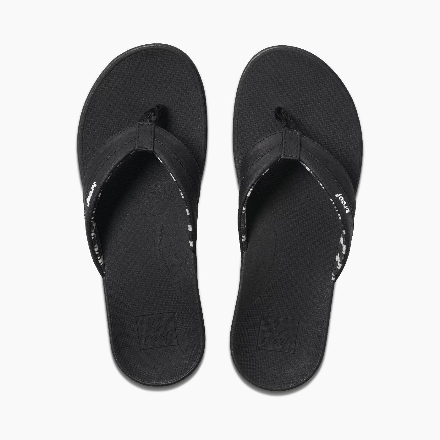 You take care of so much. The Ortho Coast takes care of your feet. Reefs Ortho- Collection embraces anatomic contouring, stable heel cupping, high arch support and the signature high energy rebound cushion footbed to make every step a treat for your feet. Outfitted with anatomical arch support to keep you comfortable through every adventure. Eco- One is an organic additive that enhances the biodegradation process through a series of chemical and biological processes when disposed of in a biologically active landill. Reef crafted this product without P V C, which means it’s better on and for the environment. Crafted with animal-friendly alternatives. Our Ortho- Collection is designed with enhanced arch support and optimal heel cupping to promote overall foot wellness and keep you comfortable all day Enhanced arch support with optimal heel cupping All day support from anatomical contouring Shock absorbent cushion footbed to reduce impact under every step E C O- One Enhanced Biodegradability footbed Recycled Pet webbing strap with vegan leather Detail Made with P V C-free materials Molded rubber Outsole with flex groves for maximum movement and stability / Womens Sandals Ortho Bounce Coast in Black / 5 / Reef