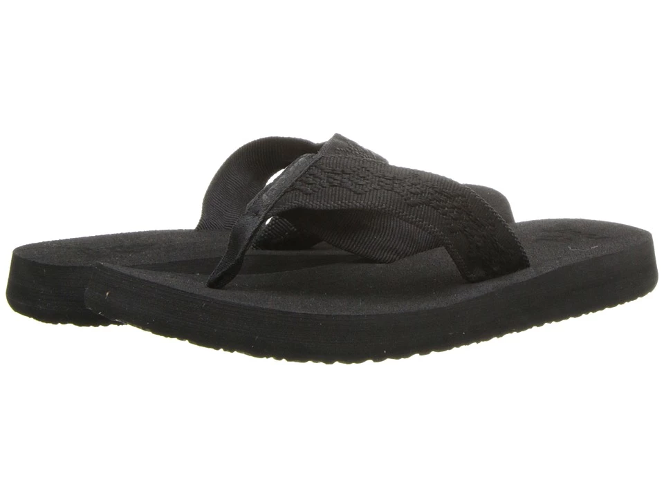 Reef delivers the goods with these classic sandals, and theyre just in time for summer! ; Thong-style sandal. Woven polyester strap is comfortable and durable. Durable webbing toe post. Brushed EVA footbed with embossed Reef logo. Arch support molding provides all-day support. High-density, synthetic outsole. Size runs a bit small, if you’re between sizes please consider sizing up. Imported. Measurements: ; Weight: 5 oz ; Product measurements were taken using size 10, width B – Medium. Please note that measurements may vary by size.