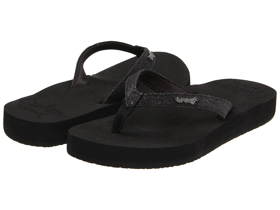 Your rise to fame has to start somewhere. Before you can have a posse, a constant trail of paparazzi, and the gossip columns making up things about you, you first need a solid foundation like the Star Cushion from Reef. With its ridiculous comfort and eye-catching sheen, it might inspire you to top the charts and be an A-list sensation! ; A sparkly synthetic strap with soft satin lining. Super soft and cushy EVA with anatomical arch support. Rubber sponge outsole for enhanced flexibility. Measurements: ; Heel Height: 1 in ; Weight: 4 oz ; Platform Height: 3 4 in ; Product measurements were taken using size 6, width B – Medium. Please note that measurements may vary by size.