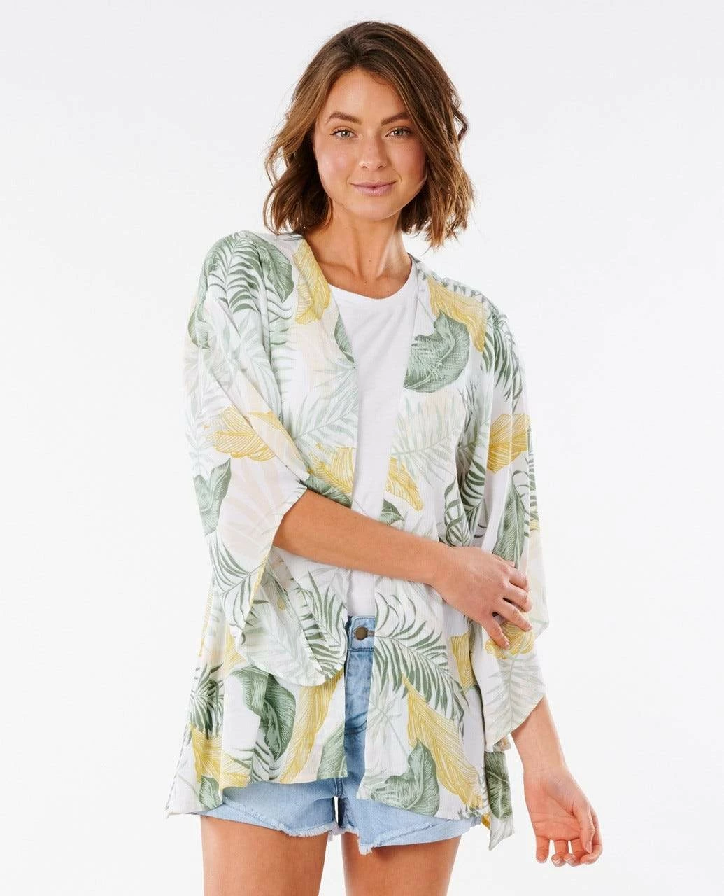 Beachy resort-wear meets eco-mindedness, the Coastal Palms Kimono is made from 100% organic fabric and is loungewear chic at it’s finest. Designed in a relaxed fit with open font, and all-over tropical palm print. Style Code Gshed9 / Womens Shirt Coastal Palms Kimono in White / Small / Rip Curl