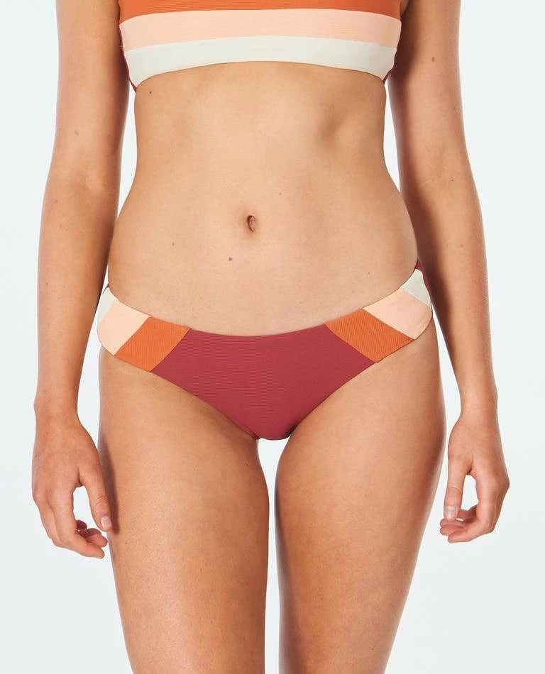 The Golden Days Block Good Pant features a good coverage cut, a flat back ribbed material, and a mid rise fit. F L A T Back Rib 190 G Good coverage1x1 mini rib Colour blocking at front Mid rise Logo trim / Womens Bikini Bottom Golden Days Block Good Pant in Maroon / X- Small / Rip Curl