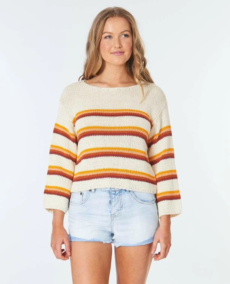 Head back in time and feel all the retro vibes in the Golden Days Sweater. Made with 100% acrylic yarn and featuring a relaxed fit, crop length and knitted stripes. / Womens Sweater Golden Days in Cream / Medium / Rip Curl