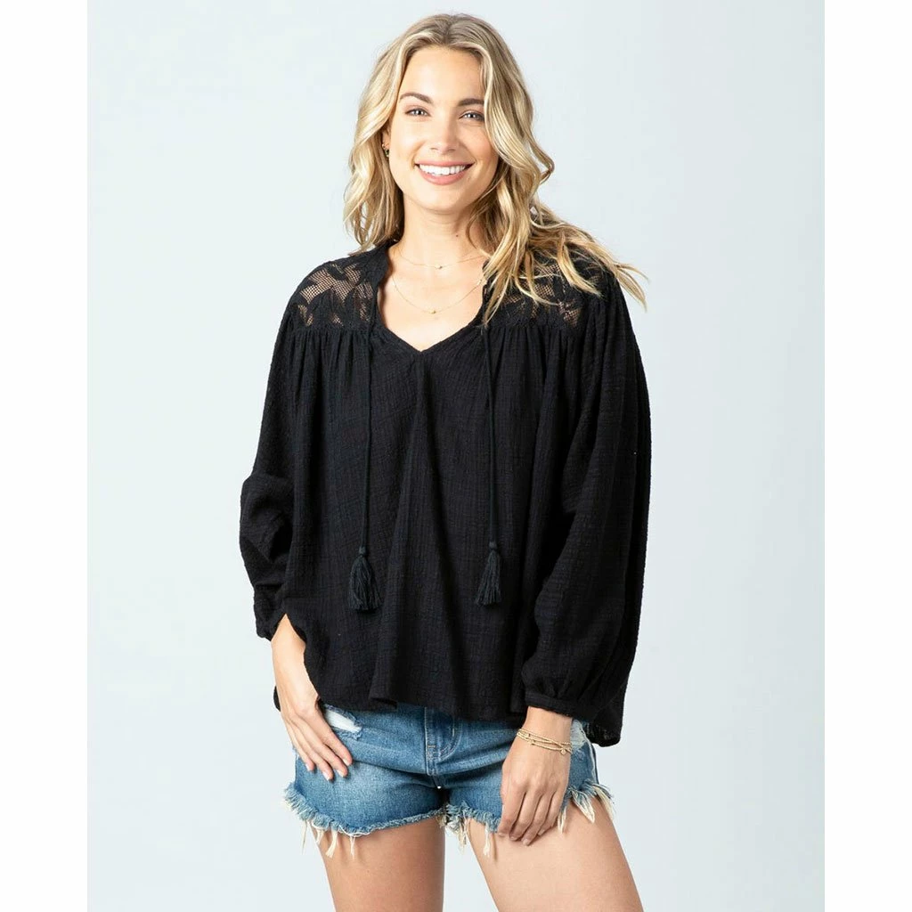 100% Cotton, Midi Length, Cf Button Placket, Front Pockets, Cb Smocked Elastic Panel, Adjustable Straps / Womens Shirt Hidden Shores Top in Black / Small / 100% Cotton / Rip Curl