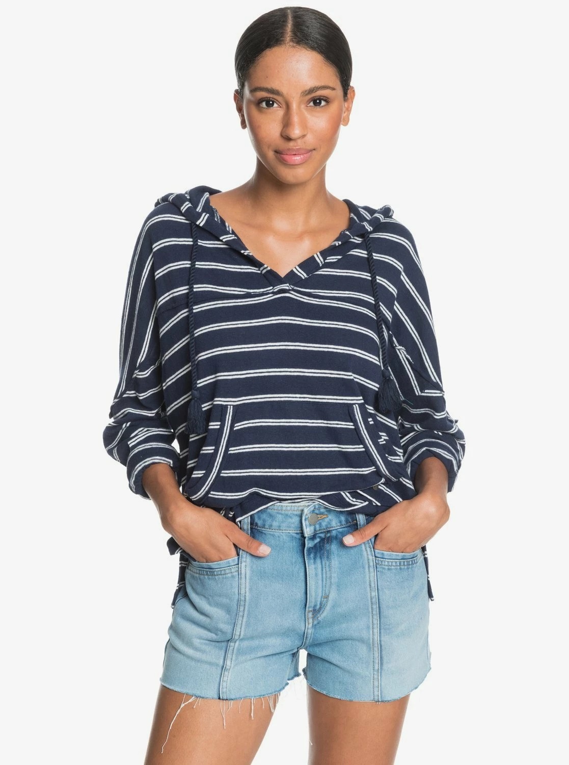Features: Fabric: Cotton polyester blend slub yarn-dyed stripe fabric [195 g/m2] Fit: Casual and unrestricted relaxed fit Neck: V-neck with placket Kangaroo pocket Twisted drawcord with tassel ends Metal Roxy plaque Composition55% Cotton, 45% Polyester Style : E R J K T03770 The model is 175cm/5’9″ tall and wears a size S in the photo / Womens Sweatshirt Sunrise Surf Hoodie in Mood Indigo Horiz Will Stripes ( Xbwb) / Small / Cotton/ Polyester / Roxy