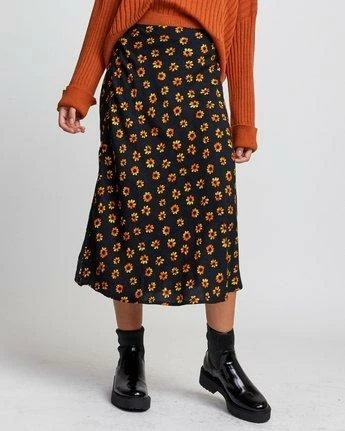 Floral Midi Skirthigh Waistslip Skirt Styleflattering Bias Cutinvisible Zip At The Side S E A M M A T E R I A L: Woven S L U B100% Rayon / Womens Skirt Annika in Black / Medium / Rvca