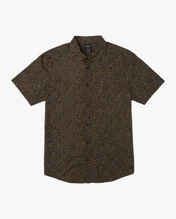 A Button Down With A L O W- K E Y Print In Neutral T O N E S, The Rvca No Fun Short Sleeve Shirt Delivers A M O D E R N, Tamed Down Take On An Animal P R I N T. Made From Cotton For A C R I S P, Breathable F E E L, The M E N’ S Shirt Is Finished With A Woven Label At The Chest P O C K E T. M E N’ S Short Sleeve Shirtregular Fittraditional Collarsingle Chest Pocketscalloped Hemrvca Solo Label At Chest Pocket H E M M A T E R I A L: Cotton W O V E N M A T E R I A L S55% L I N E N, 45% Viscose / Mens Woven No Fun in Brown / Small / Cotton / Rvca