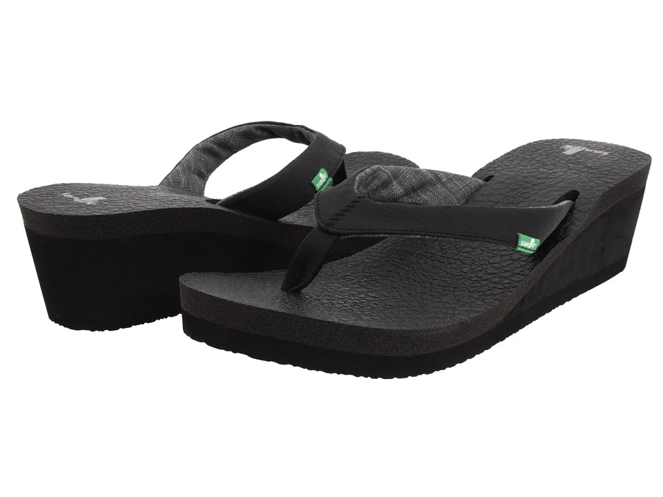 Get an extra lift of height while experiencing the bliss-inducing comfort of the Yoga Mat Wedge from Sanük! ; Synthetic upper with Sanuk logo label. Textile printed lining and webbed toe strap. Yoga mat materials in the footbed offers up some soft and squishy comfort with every step. High-density EVA wedge. Synthetic Happy-U outsole. Measurements: ; Heel Height: 2 1 4 in ; Weight: 6 oz ; Platform Height: 1 in ; Product measurements were taken using size 8, width B – Medium. Please note that measurements may vary by size.