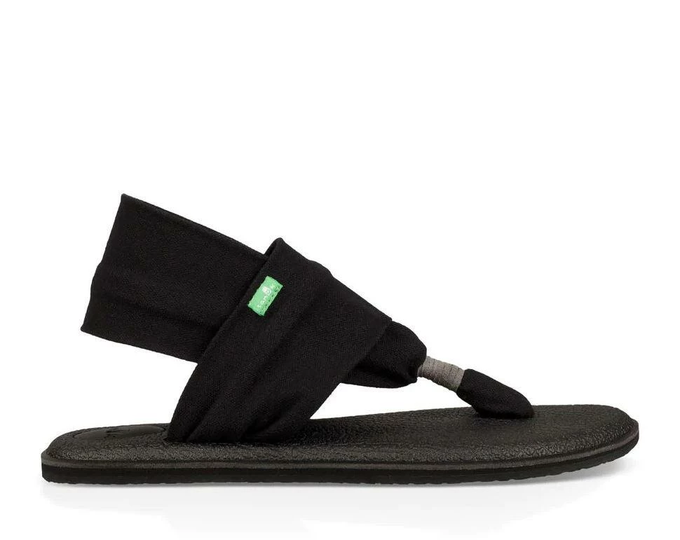 Slip on the comfiest, most cushiony sling sandals ever made. With squishy soft footbeds made outta real yoga mat material and cozy stretch-knit straps blessing your every step, Yoga Sling 2 will chakra ya feet into Om-azing states of enlightenment. Lightweight, two-way stretch knit upper featuring Yoga Sling comfort Footbed made from real yoga mat with a sealed edge Happy rubber sponge outsole / Womens Sandals Yoga Sling 2 in Black / 5 / Sanuk