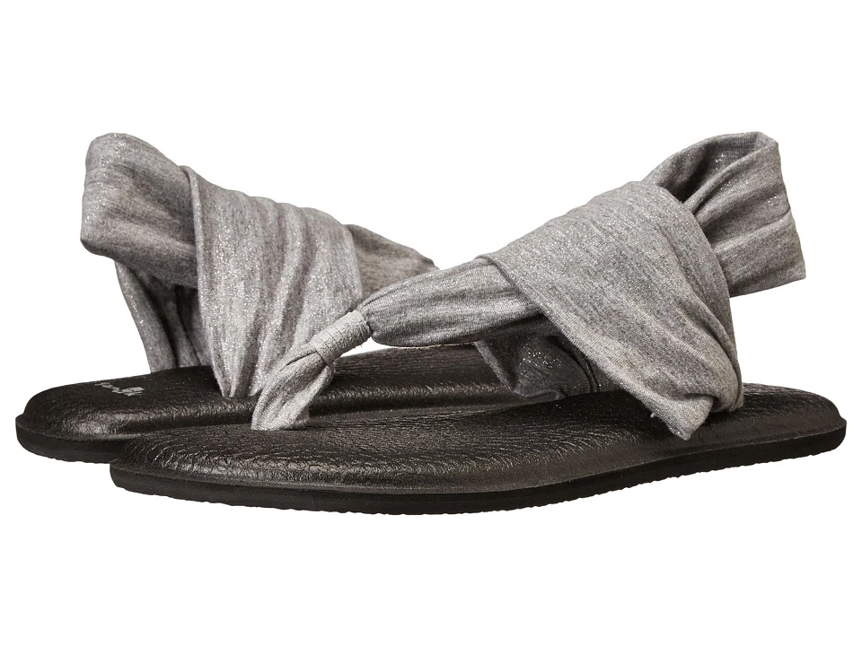 Let your style shine through with the unparallelled comfort of the Sanuk Yoga Sling 2 Metallic sandal! ; Lightweight, two-way stretch metallic knit upper featuring Yoga Sling comfort. Footbed made from real yoga mat with a sealed edge for all-day wear. Logo detailing adorns footbed. Happy U rubber sponge outsole for optimum durability. Imported.