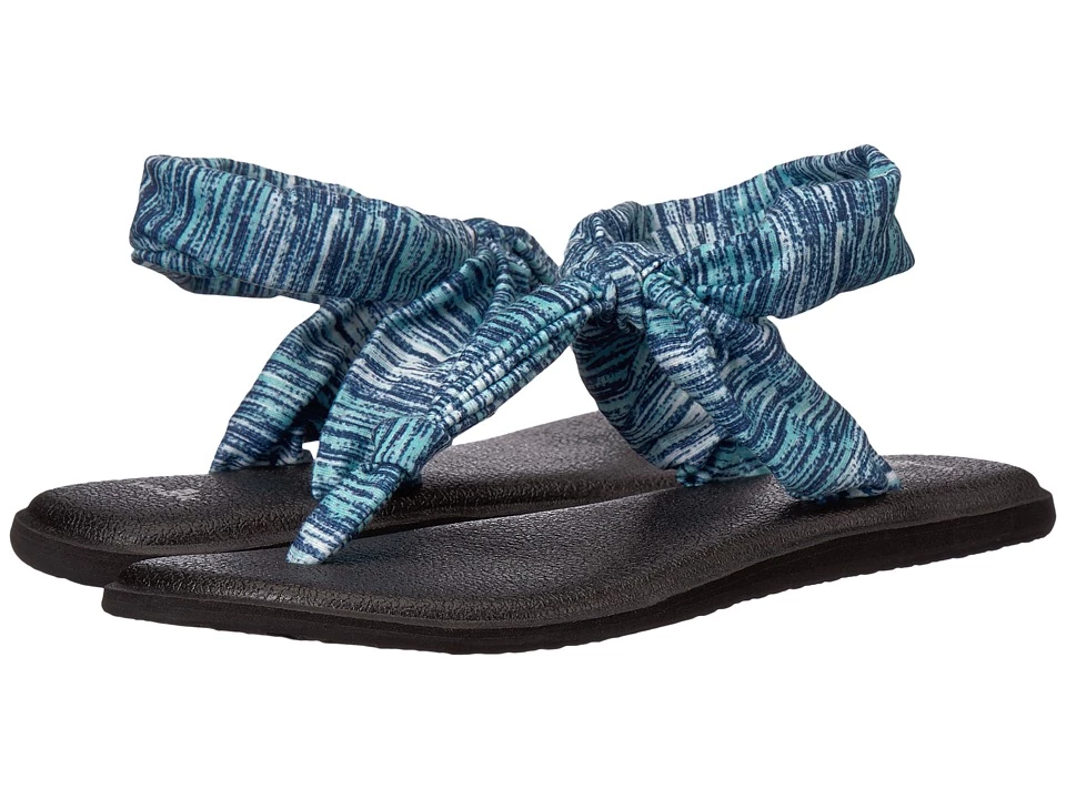 Superior comfort and style go a long way with the fashion-forward Sanuk Yoga Sling Ella Prints sandal! Lightweight two-way stretch knit upper with sling comfort construction. Allover print for added style. Sealed edge footbed made from real yoga mat for all-day comfort. Happy U sponge rubber outsole for long-lasting wear. Imported. Measurements: Weight: 7 oz Product measurements were taken using size 8 width B – Medium. Please note that measurements may vary by size. Weight of footwear is based on a single item not a pair.