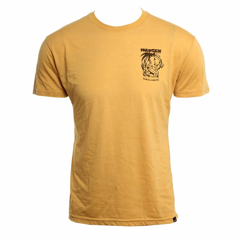 The Mens Surfing Devil shirt is a 50% Polyester 25% Cotton 25% Rayon blend tee with front and back screen print / Mens Shirt Surfing Devil in Golden ( Goo) / X- Large / Cotton/ Polyester / Hansen