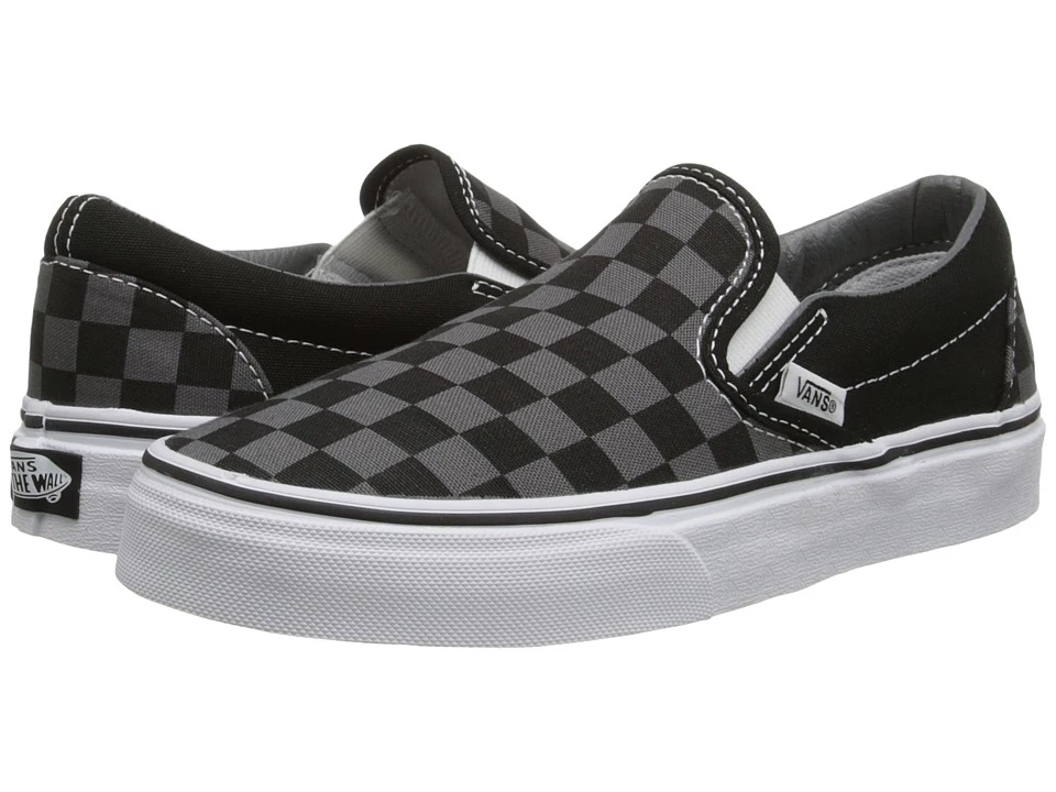 The shoe that started it all. . . the iconic Vans Classic Slip-On. A slip-on deck shoe with Vans’ classic Off the Wall outsole. Durable canvas uppers (unless noted in color name) for long lasting wear. Padded collar and footbed for supreme comfort, fit, and superior shock absorption. Cotton drill lining for excellent breathability and extra comfort. Die-cut EVA insert for added support. Vulcanized sole attachment. Gum rubber outsole with Vans’ signature waffle tread. Measurements: ; Weight: 14 oz ; Product measurements were taken using size Men’s 9. 5, Women’s 11, width Medium. Please note that measurements may vary by size.