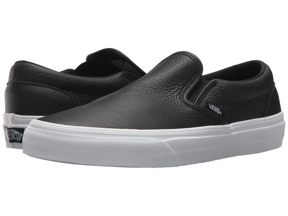 Keep your daily vibes clean with the unmatched style of the Vans Classic Slip-On DX shoe! Deluxe uppers of premium leather. Classic slip-on silhouette. Elastic side accents. Durable canvas uppers (unless noted in color name) for long lasting wear. Padded collar offers a comfortable fit. Cotton drill lining for excellent breathability and extra comfort. UltraCush sockliner for long-lasting comfort. Die-cut EVA insert for added support. Vulcanized construction: – Slimmed-down profile offers a flexible feel. – Gum rubber outsole with signature waffle tread provides superior grip and boardfeel. Imported. Measurements: Weight: 13 oz Product measurements were taken using size Men’s 8 Women’s 9. 5 width Medium. Please note that measurements may vary by size. Weight of footwear is based on a single item not a pair.