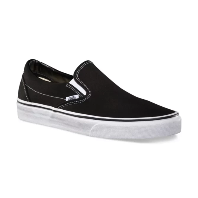 The Classic Slip- On has a low profile, slip-on canvas upper, elastic side accents, Vans flag label and Vans original Waffle Outsole. Unisex Ladies size down 1.5 sizes (ex. Womens 9 = Mens 7.5) / Shoes Classic Slip On in Black / 3.5 / Vans
