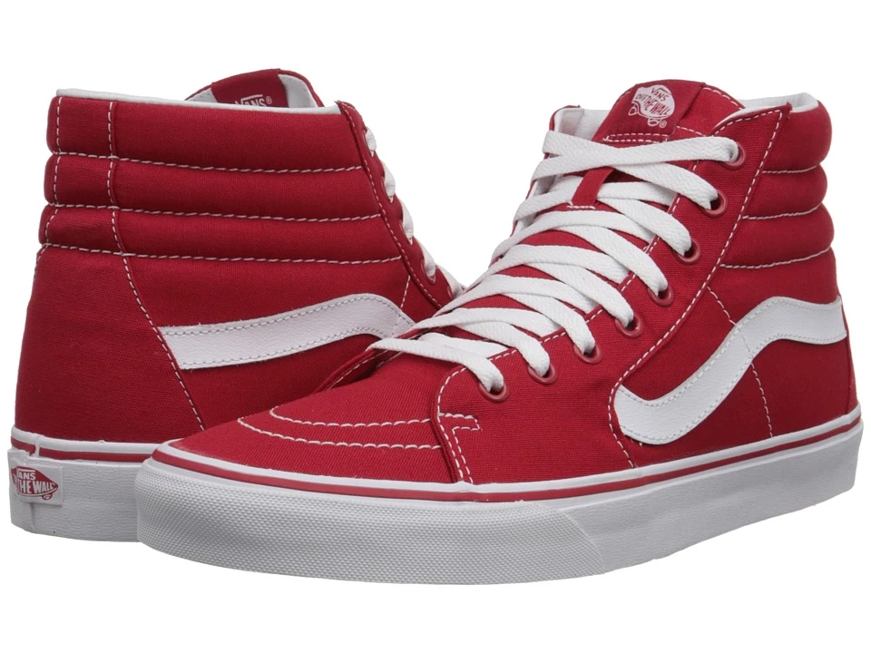 Keep it old school every step of the way with the classic Vans SK8-Hi shoe! High-top silhouette. Uppers of suede leather or canvas. Cotton drill lining. Padded collar for added comfort and support. Triple-stitch collar adorns collar. Die-cut EVA insert. Vulcanized construction: – Slimmed-down profile offers a flexible feel. – Gum rubber outsole with signature waffle tread provides superior grip and boardfeel. Imported. Measurements: Weight: 1 lb 2 oz Shaft: 6 1 2 in Product measurements were taken using size Men’s 10 Women’s 11. 5 width Medium. Please note that measurements may vary by size. Weight of footwear is based on single item not the pair.