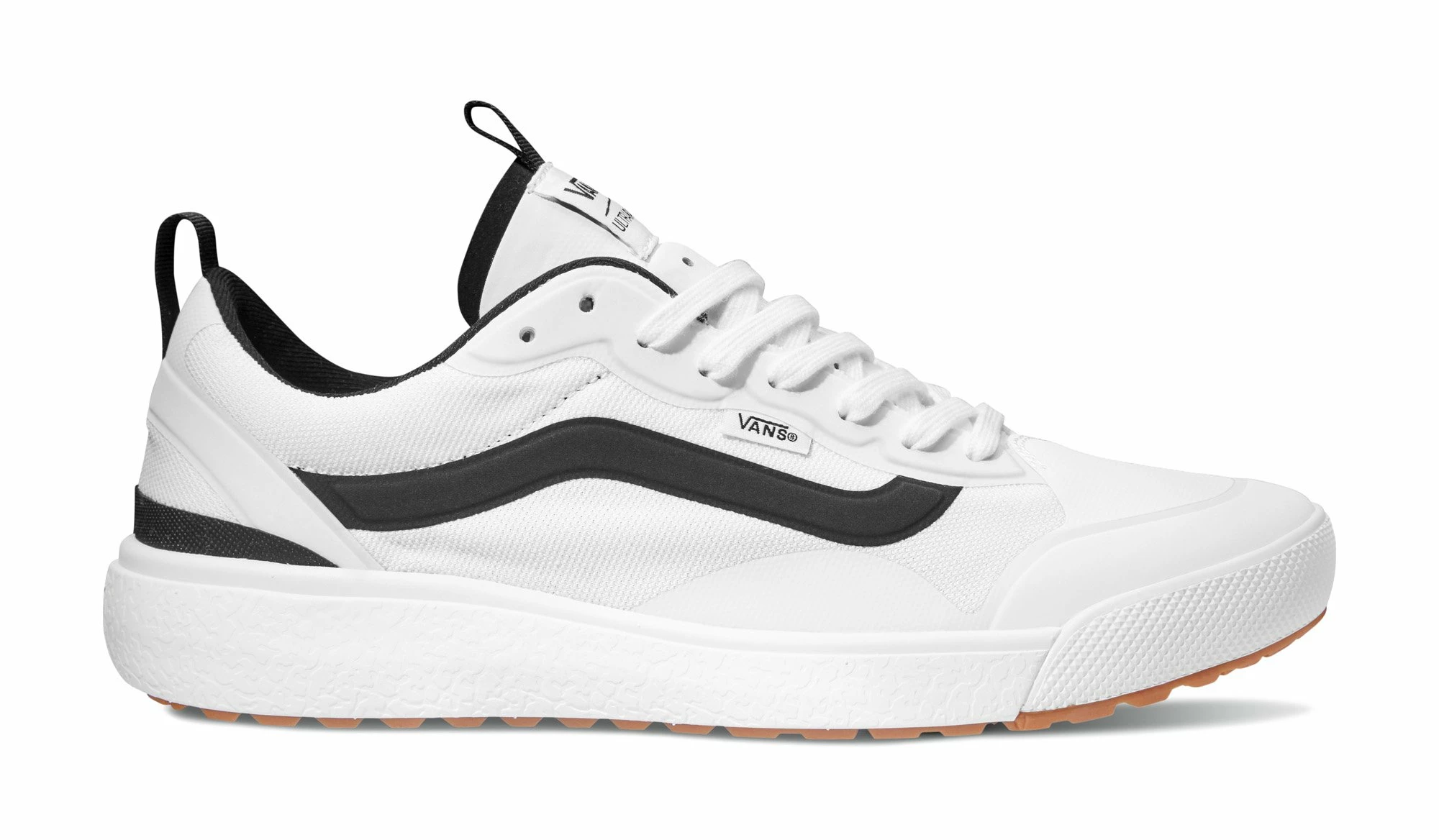Armed with a co-molded Ultra Cush midsole, updated Rapid Weld detailing, a lightweight, die-cut rubber outsole, and a breathable Old Skool-inspired upper, this is the Ultra Range – evolved. The Ultra Range Exo is made with sturdy textile and synthetic uppers. Increased Breathability: Ultra Cush® tongue with breathability ports for superior airflow Ultra Cush® for Comfort: Co-molded Ultra Cush® Lite midsole increases comfort, not weight All- Terrain Grip: Full rubber-wrapped reverse waffle lug outsole for improved traction and flexibility Full Support: Exo Skeleton provides built-in support across the toes and medial sidewall, with a heel lock for a secure fit. Women size down 1.5 sizes ( E X. Mens 8 = Womens 9.5) / Shoes Ultra Range Exo in White / 8 / Vans
