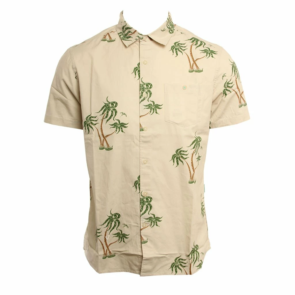 Well versed in Hawaiin vibes the Ala Moana shirt does it well. This button down is printed on light weight fabric that features a front chest pocket and contrast chambray lining. Its sand washed with softener to have a comfy island feel from day one.95% C O T T O N5% Polyester / Mens Woven Ala Moana in Bone / Medium / Cotton/ Polyester / Vissla