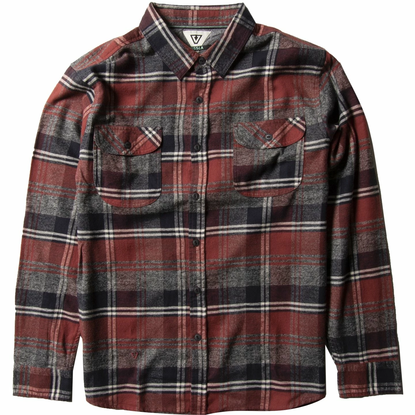 Super soft brushed medium weight Ls plaid flannel. Sewn in center front placket with button down front chest pockets and contrast chambray lining at inside back yoke. Heavy garment wash.100% cotton / Mens Woven Central Coast Flannel in Blood 2 ( Bo2) / Medium / 100% Cotton / Vissla