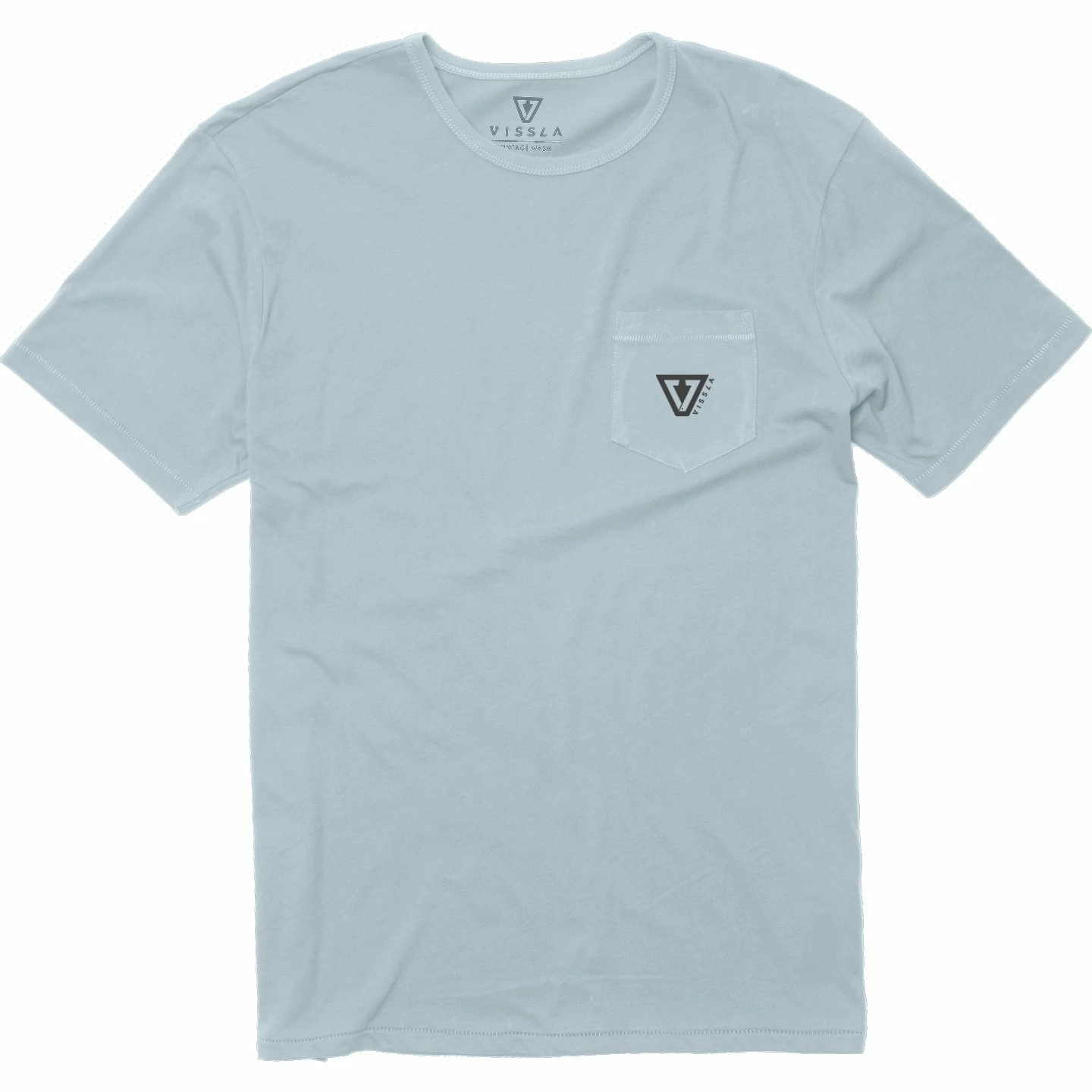 This garment dyed 26 singles modern fit crew neck ticks all the right boxes. Superior comfort t-shirt made with 100% Gots certified organic cotton and Blue Sign certified dyes, which makes it light on the environment. . Features: pocket screen print and garment enzyme wash for a soft feel and worn-in appearance. It’s well established. / Mens Established Organic Pocket Tee Shirt in Chambray ( Cmb) / Medium / Cotton / Vissla