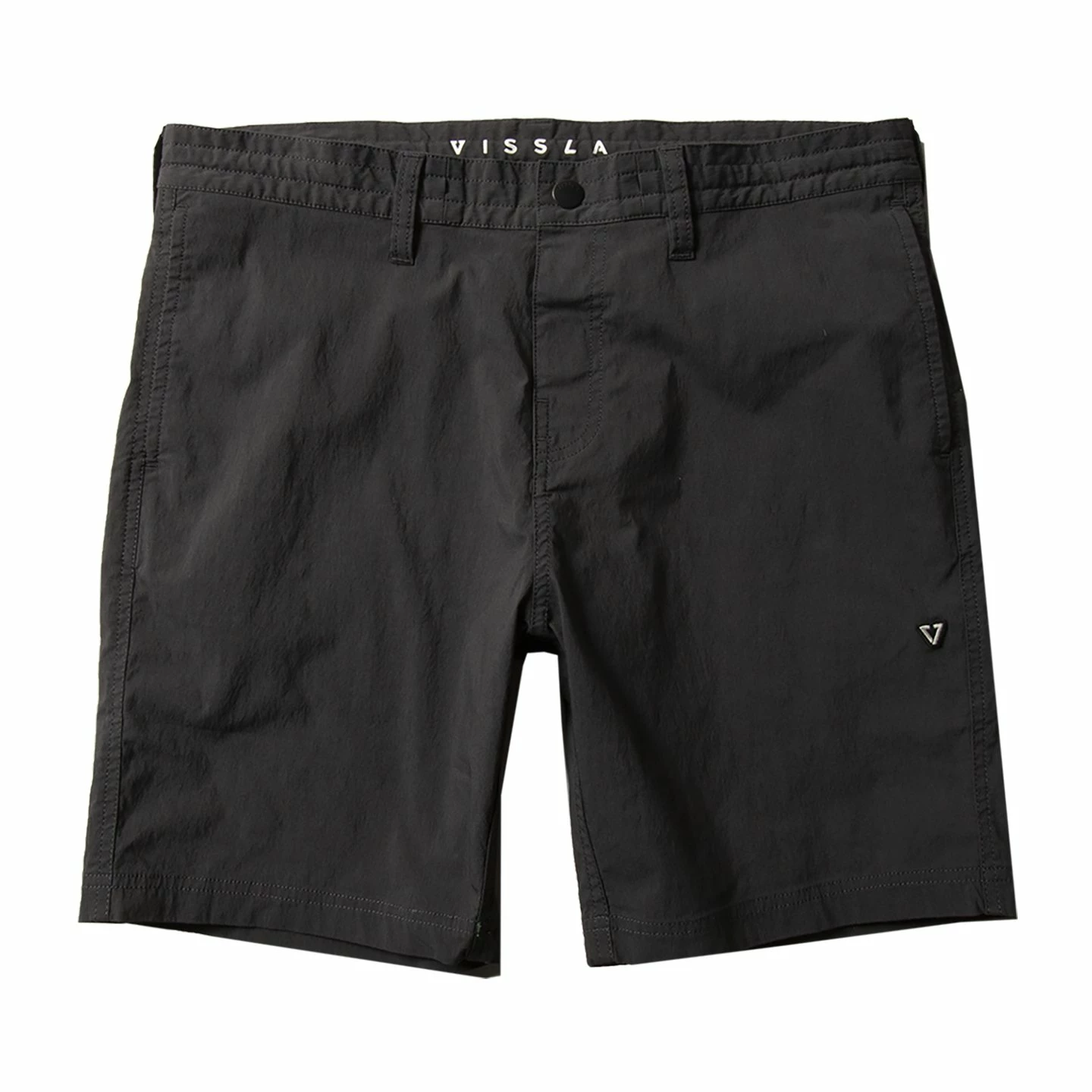 Stretch cotton nylon fabric. Style features button down back pocket and side slash pockets. Drawstring waistband with center front button closure and hook and loop at fly. / Mens Shorts Ranger 18.5″ Walkshort in Phantom / 28 / Cotton/ Nylon / Vissla