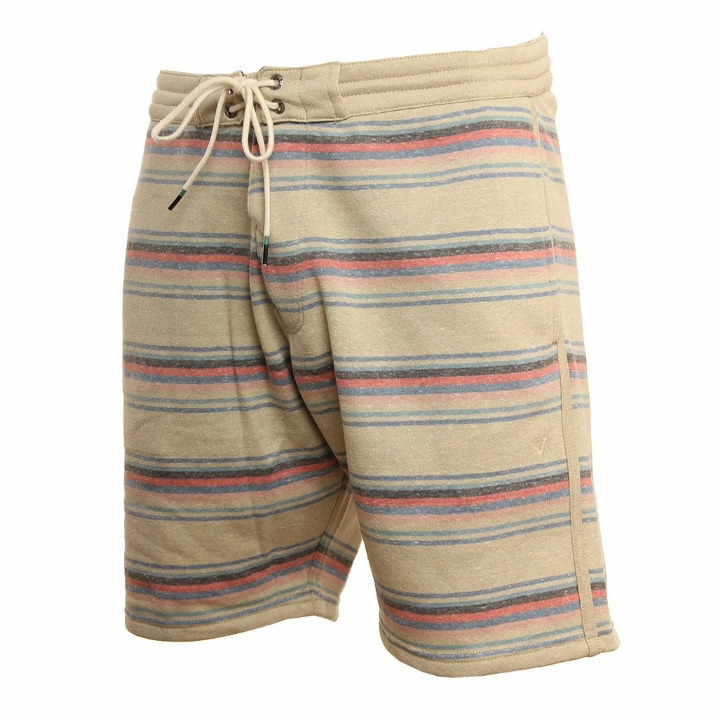 Stripe show- heather fleece. Style features button down back pocket on seam side pockets tethered waistband closure and logo embroidery.50% Polyester 38% Cotton 12% Rayon / Mens Short Sofa Surfer Funner Stripe in Dune Heather ( Duh) / Small / Cotton/ Polyester / Vissla